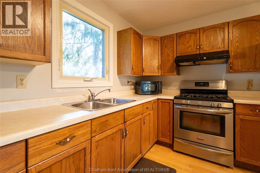 Welcome to this charming and affordable brick bungalow located on a corner lot, in a quiet family-oriented neighbourhood in Dresden. This 3-bedroom, 1-bathroom home is ideal for first-time home buyers, families, or anyone looking to downsize. Step inside to a spacious living room with natural light from the large picture window. This freshly painted home has an open-concept kitchen and dining area that provide ample space for cooking. Patio doors from the dining area lead to a covered porch, overlooking the fully fenced backyard where kids or pets can play safely. The home features Centennial Windows throughout (installed in 2020), new patio doors and exterior front door (2021), an updated roof, and an attractive interlocking brick driveway. Lennox forced-air gas furnace, main floor laundry and 3-piece bathroom with a walk-in shower. The attached garage offers inside entry to the home and convenient access to the deep, dry crawlspace, providing plenty of storage options. Whether you’re looking to settle down in a family-friendly neighborhood, enjoy single-floor living, or move closer to the tranquility of Dresden’s outskirts, this bungalow is a wonderful opportunity. (id:4555)